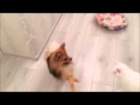 cat In The dog bed - YouTube